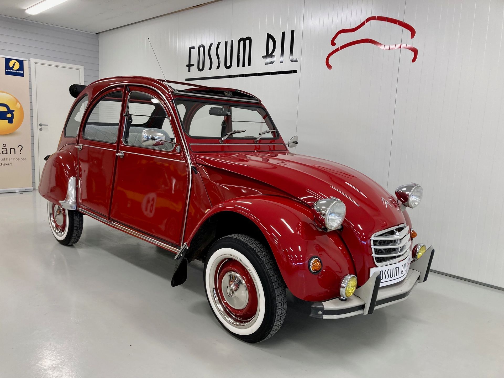 Citroen 2CV, elsket av entusiaster over hele verden. "Jernsenga, studentkontainer og krengeapperat" er bare noen av kjælenavnene på disse bilene. Denne 1985 modellen hadde litt annen motor, noe høyere kubikk og "Powertube" som også skulle gi mer effekt.